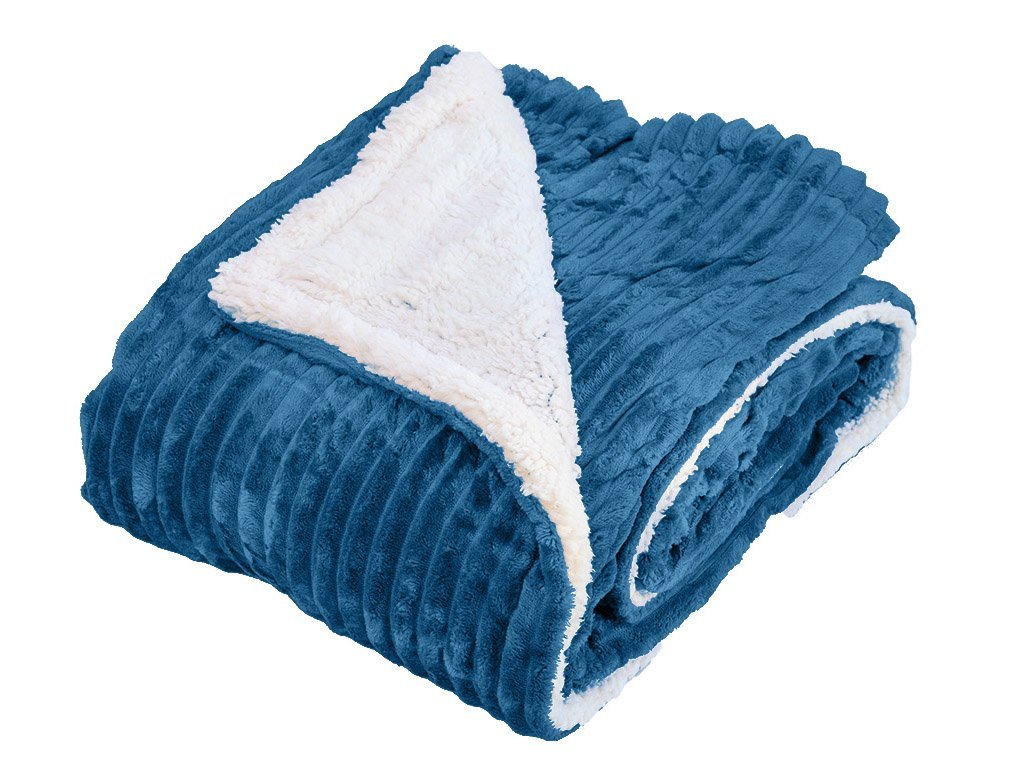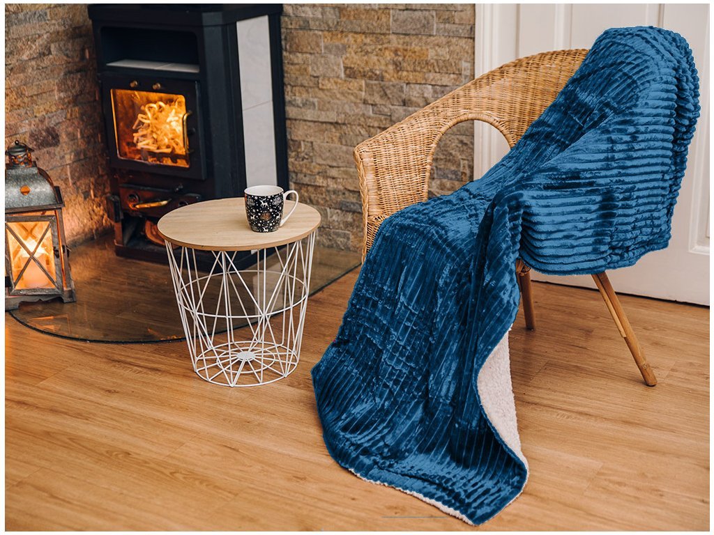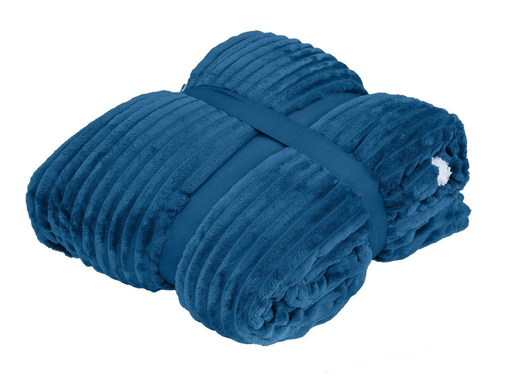 Luxusná modrá baránková deka z mikroplyšu s pruhmi, 180x200 cm
