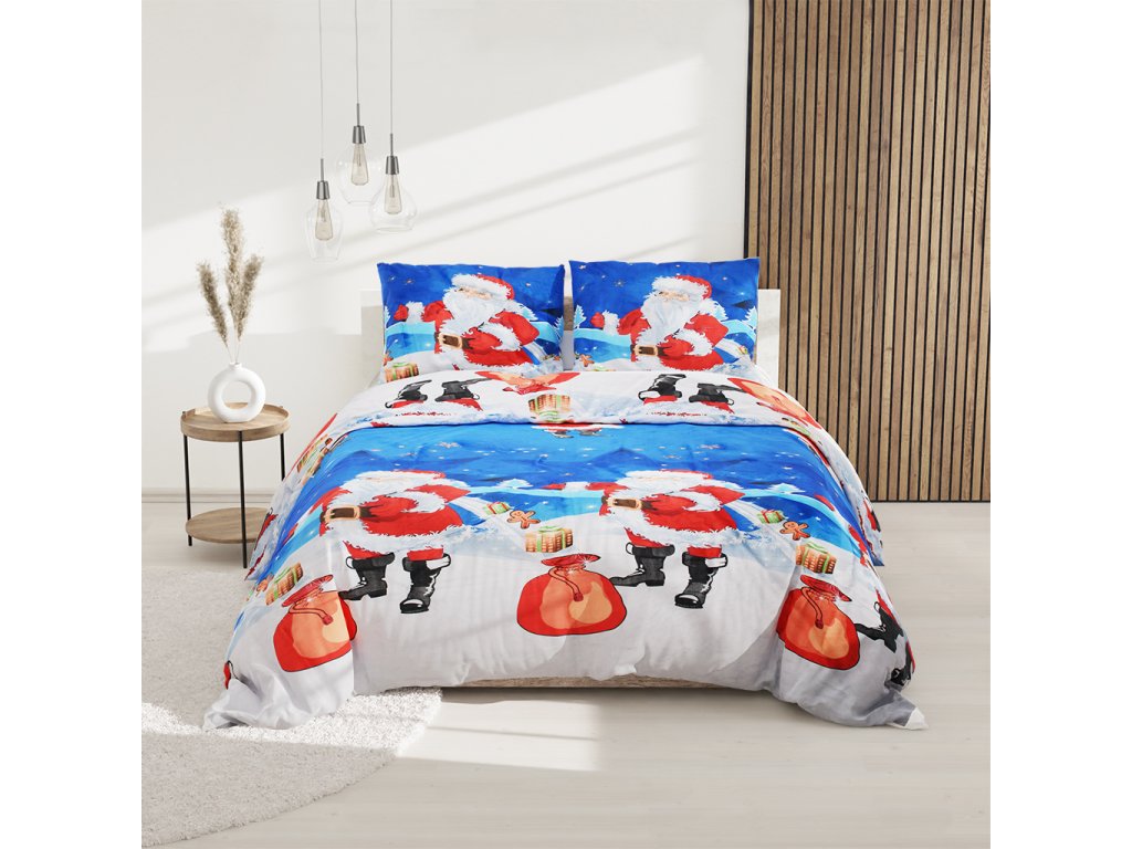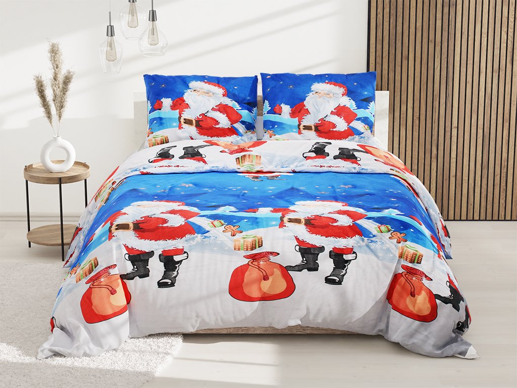 Bavlnené obliečky KÚZELNÝ SANTA modré + obliečka na vankúšik 40 x 50 cm zadarmo