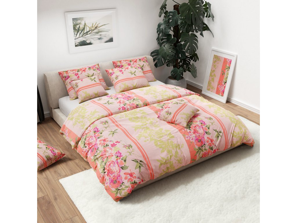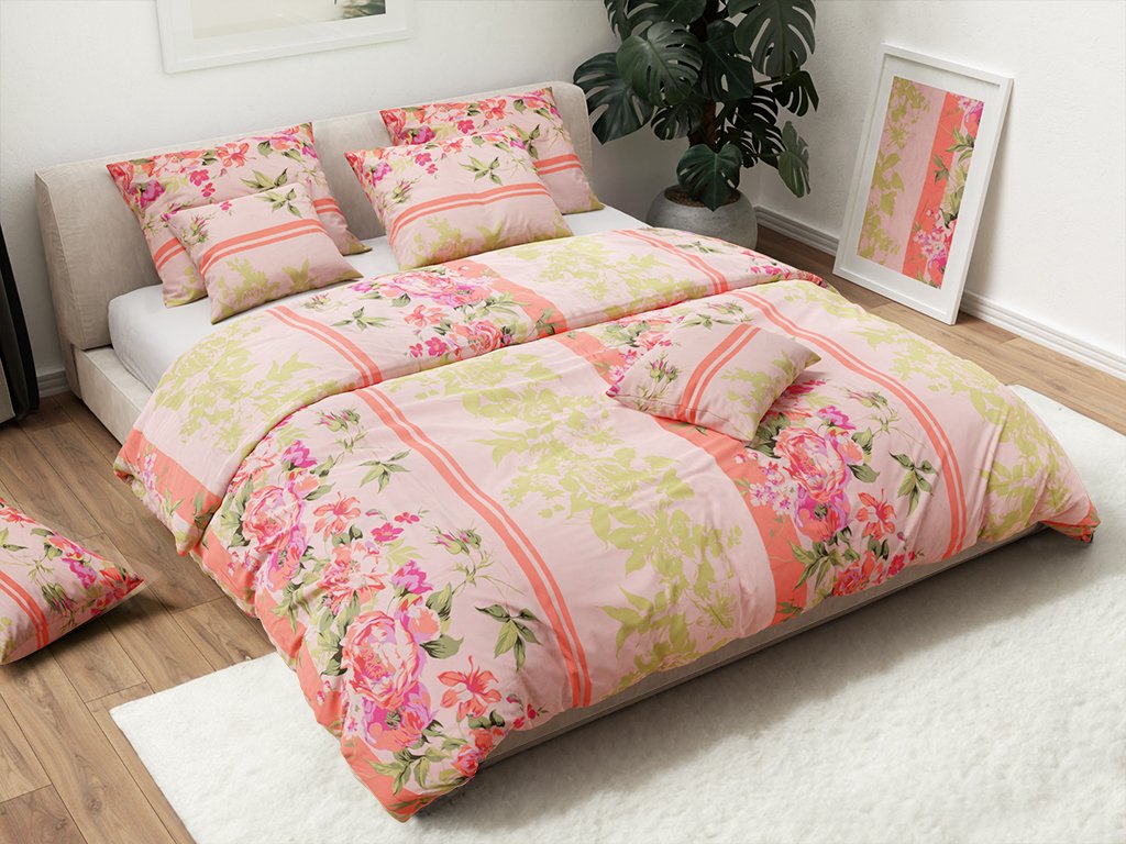Bavlnené obliečky KVETY S LISTAMI ružové