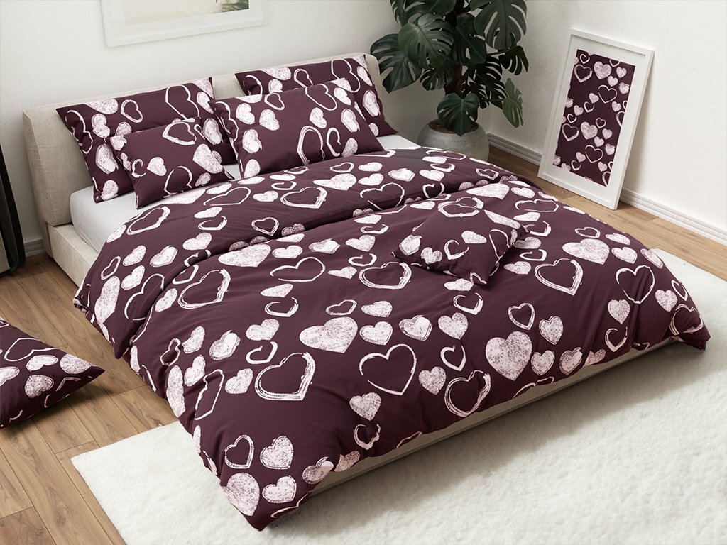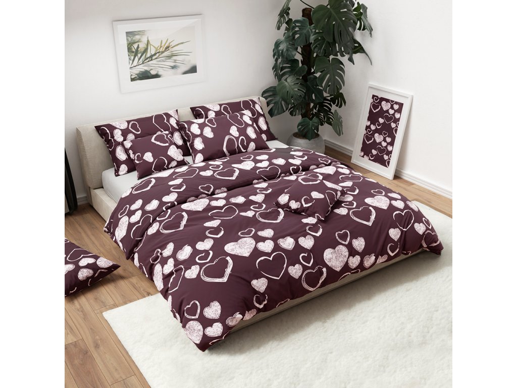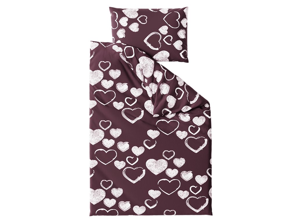 Kvalitné obliečky sú veľmi obľúbené pre svoju mäkkosť, vysokú savosť a priedušnosť. Obliečky s motívom sŕdc sa hodí do spální vo všetkých štýloch. Vínové pozadie v kombinácii s bielymi detailmi, originálnym dizajnom a jemnou textíliou si zamilujete aj Vy.