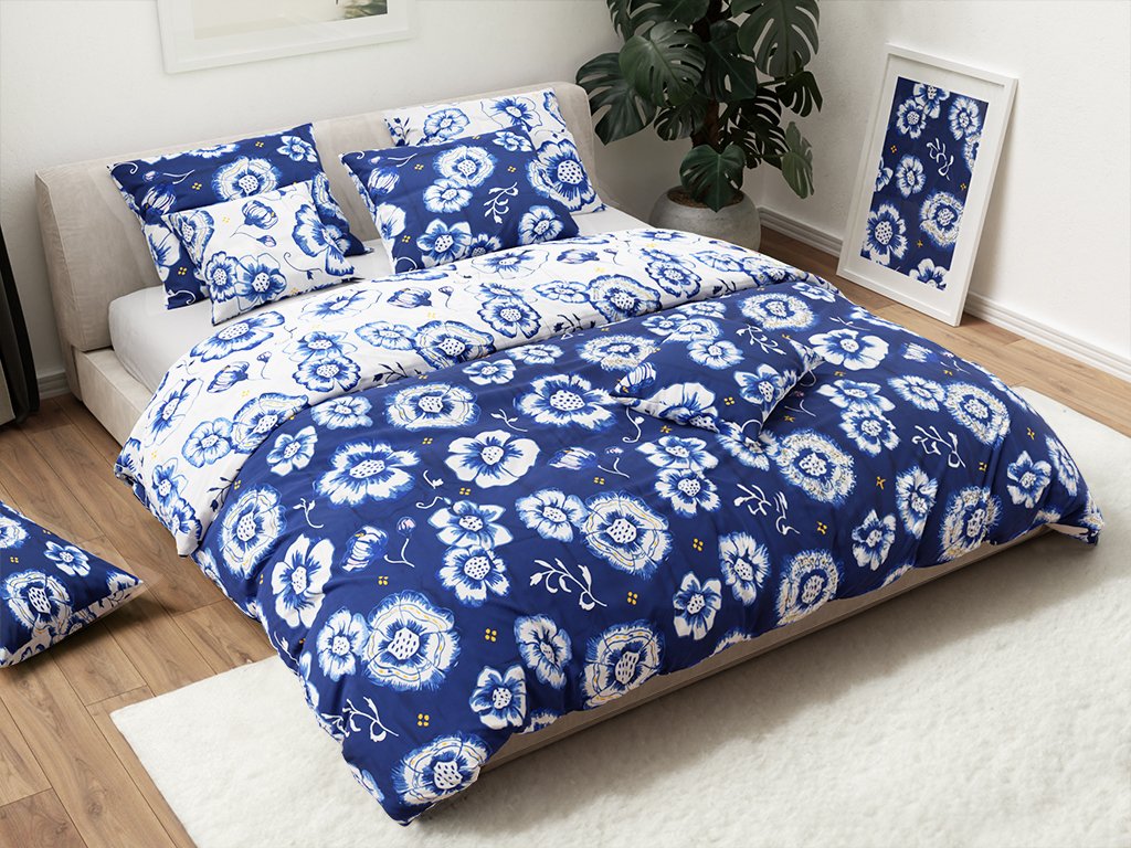 Bavlnené obliečky MODRÝ KVET v kombinácii modrej a bielej farby prinesú do vašej spálne svieži a elegantný vzhľad inšpirovaný tradičnými kvetinovými vzormi. Sýto modré kvety na kontrastnom pozadí vytvárajú harmonický a nadčasový dizajn. Obliečky sú vyrobené zo 100% bavlny, ktorá je priedušná, príjemná na dotyk a zaisťuje pohodlný spánok po celý rok.