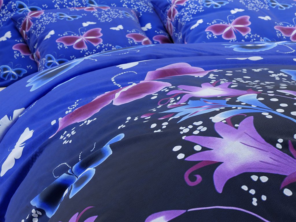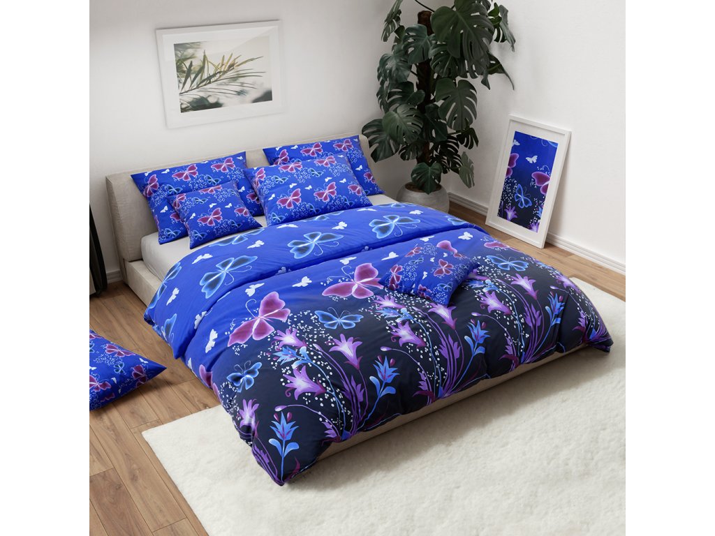 Bavlnené obliečky VIOLET BUTTERFLY tmavomodré, 100% bavlna