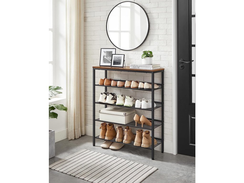 Botník TAYLOR hnedý s čiernou konštrukciou, 4 police