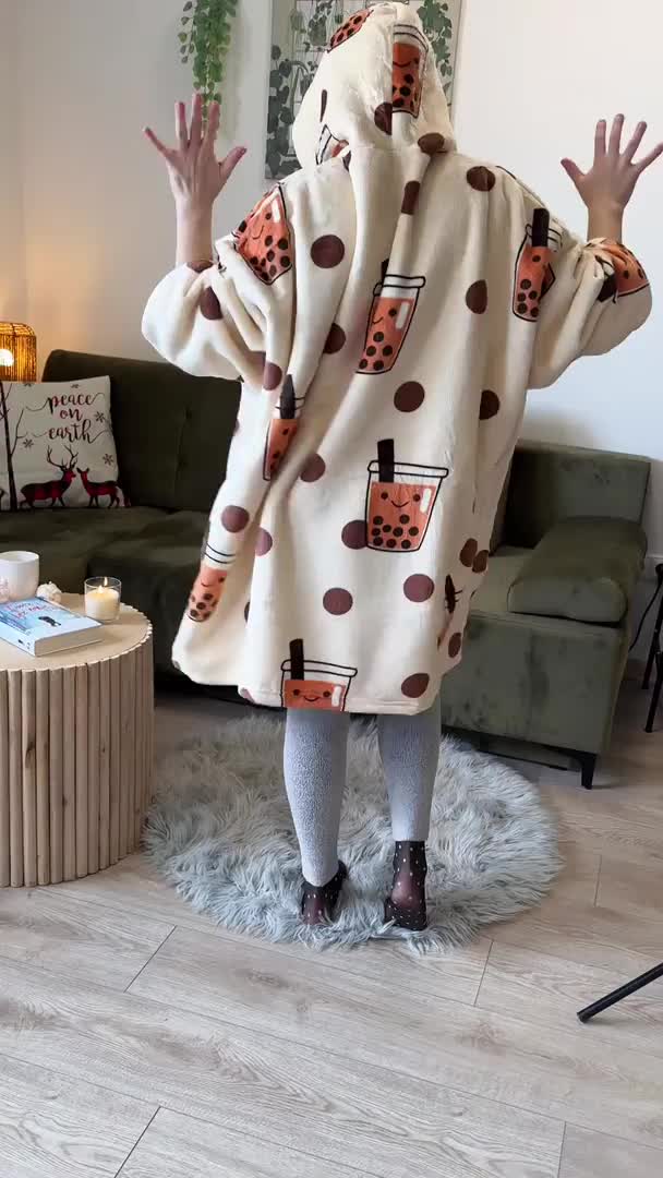 Baránková mikinová deka s rukávmi a kapucňou BEVERAGE krémová