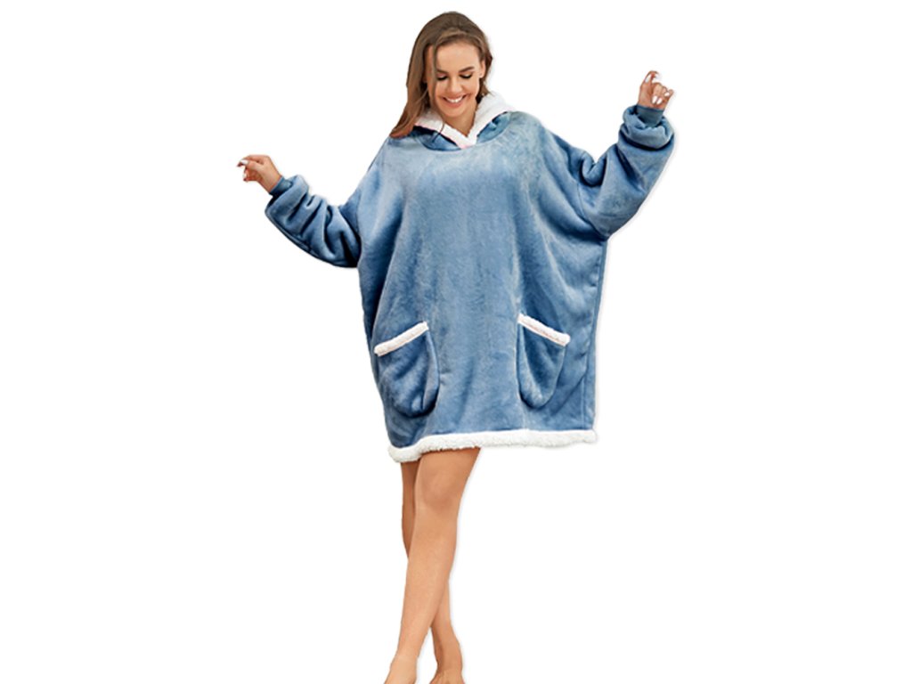 Baránková mikinová deka s rukávmi a kapucňou HORIZON modrá