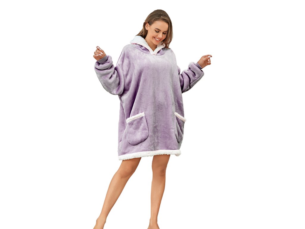 Baránková mikinová deka s rukávmi a kapucňou LAVENDR svetlofialová
