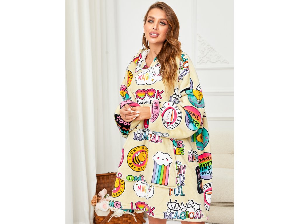 Baránková mikinová deka s rukávmi a kapucňou MAGICAL krémová