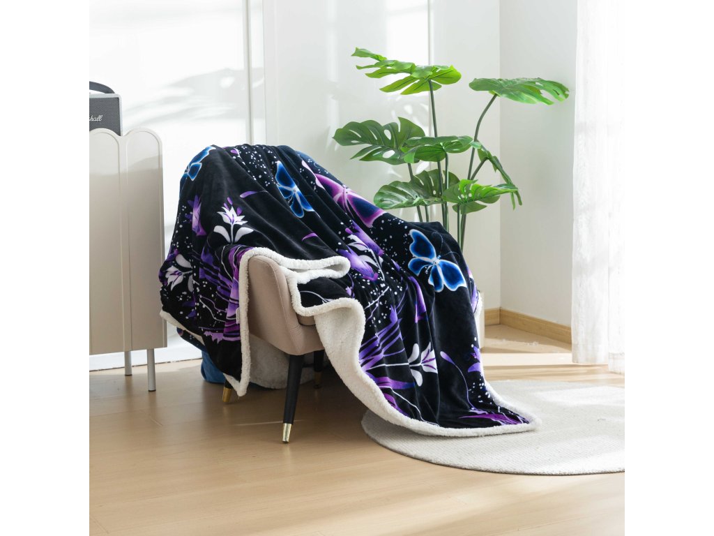 Mikroplyšová baránková deka VIOLET BUTTERFLY tmavomodrá
