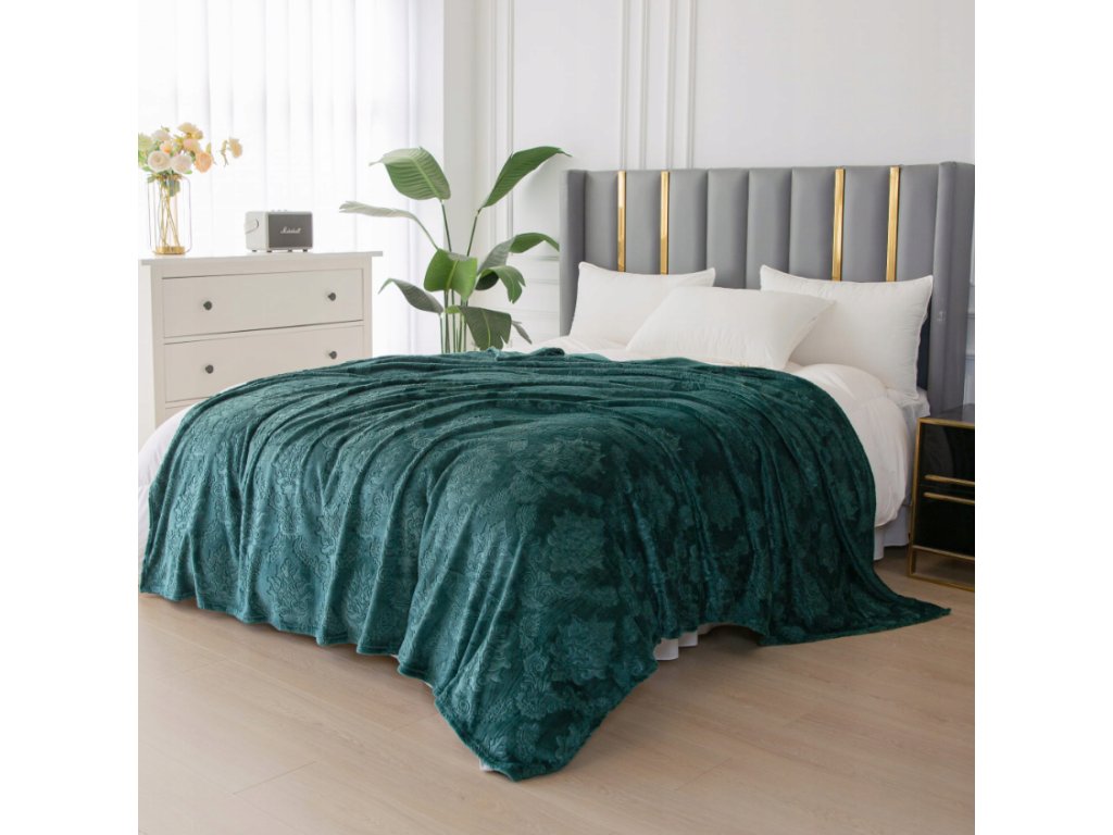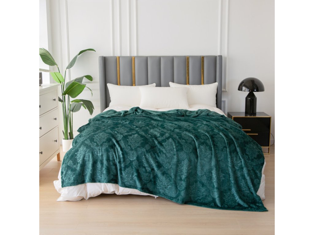Mikroplyšová deka s ornamentmi VELORIA tmavozelená