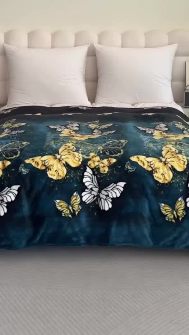 Mikroplyšová deka ZLATÝ A BIELY MOTÝĽ, tmavozelená