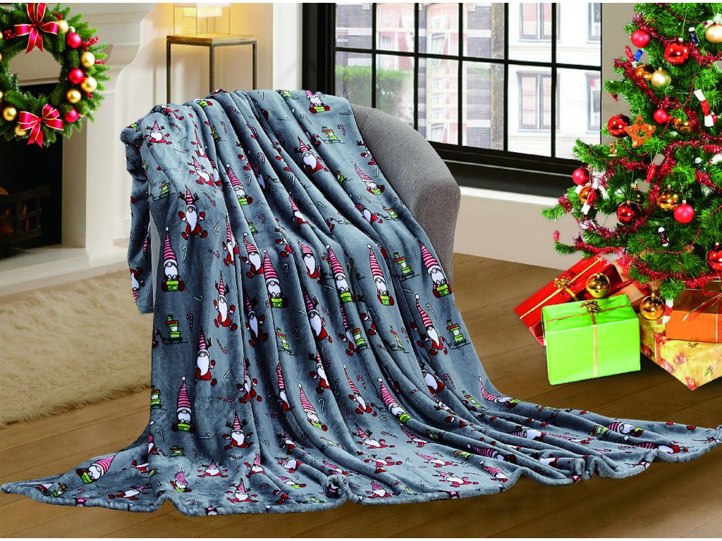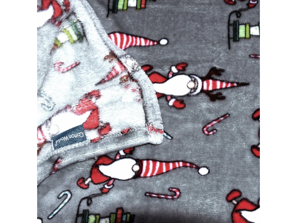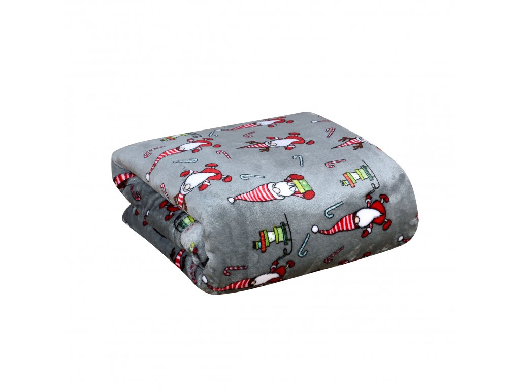 Tmavosivá vianočná mikroplyšová deka CANDY CANE