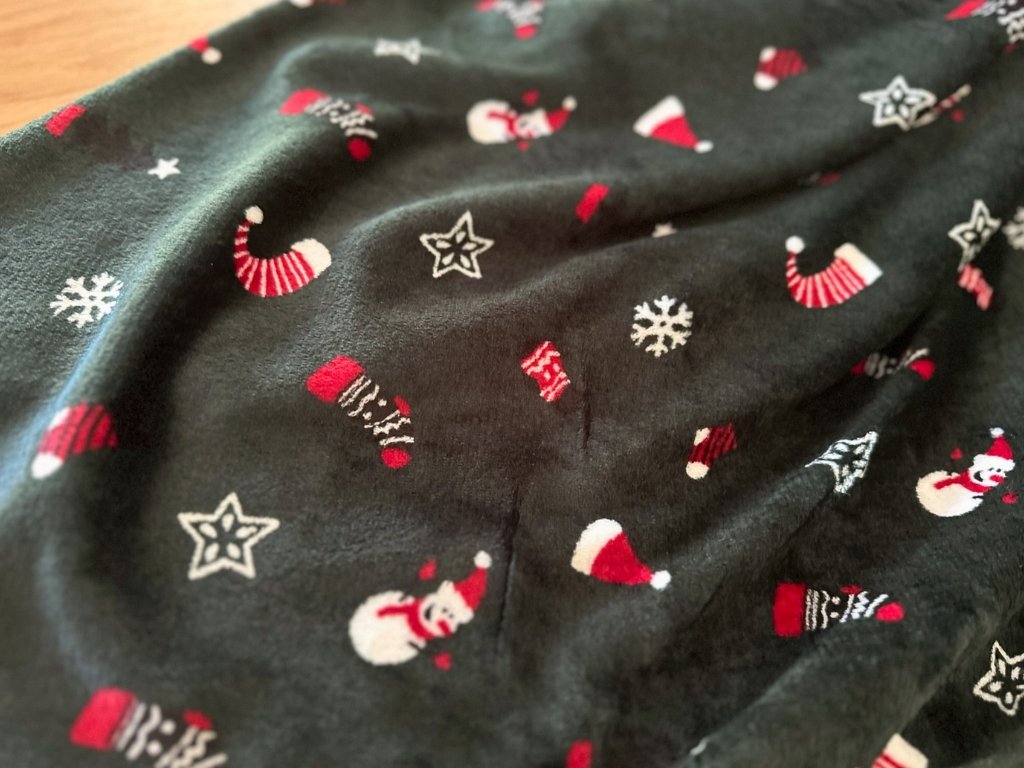 Tmavozelená vianočná mikroplyšová deka VIANOČNÉ ČIAPKY