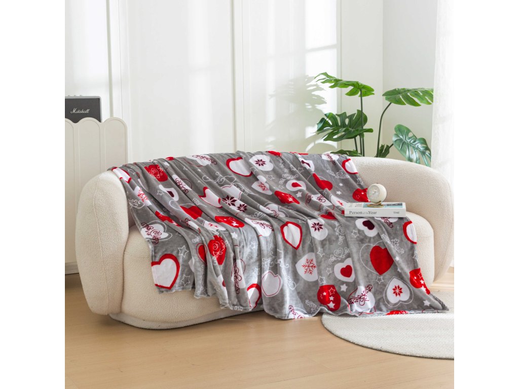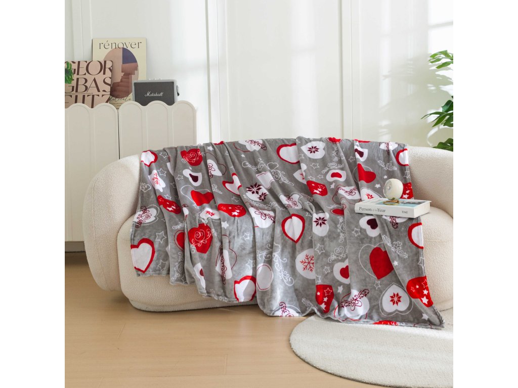 Vianočná mikroplyšová deka CHRISTMAS HEART sivé