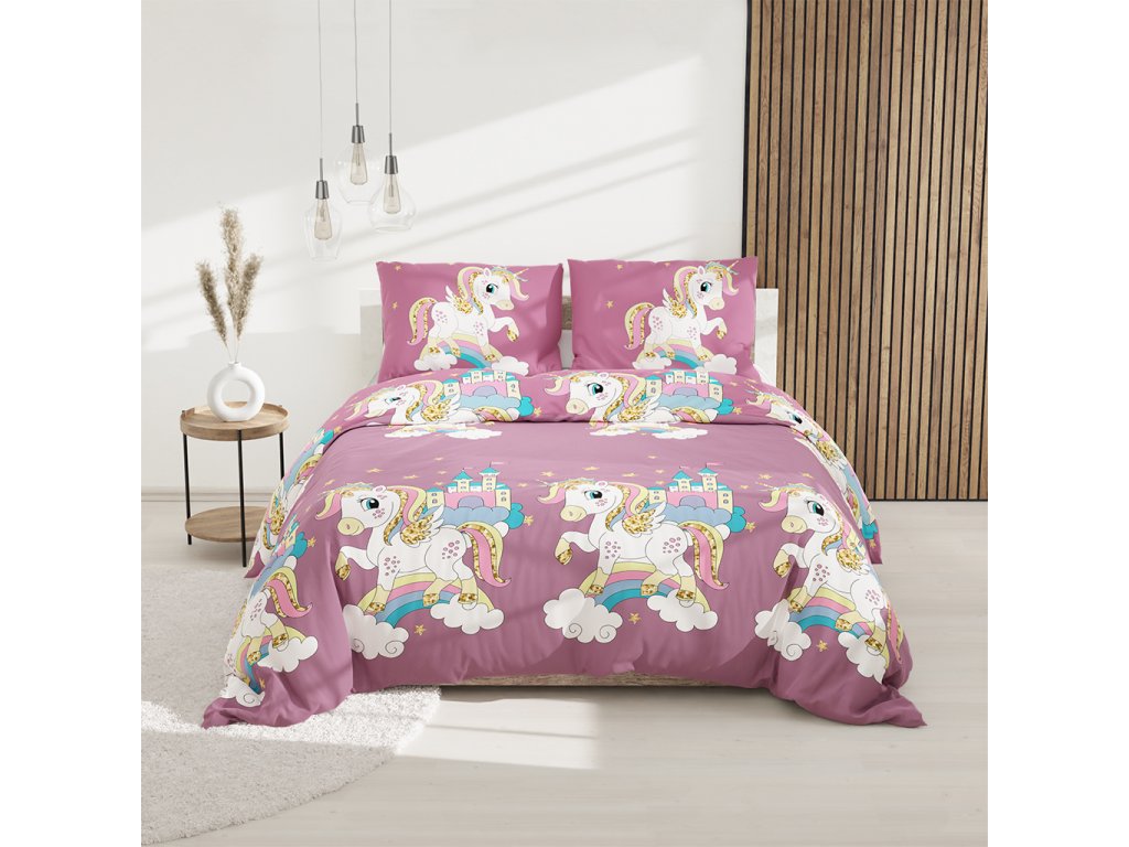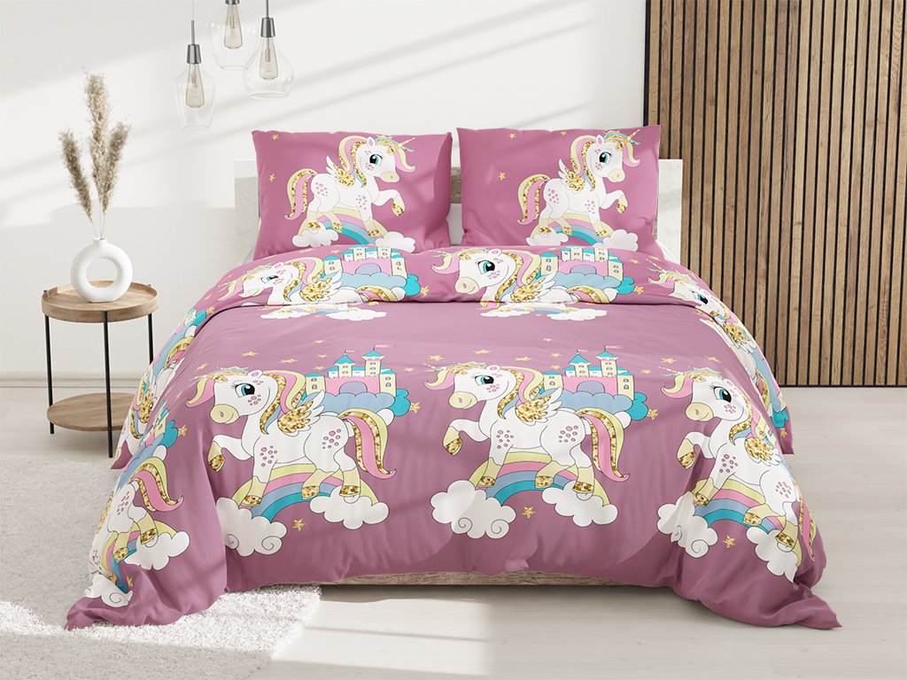 Detské bavlnené obliečky JEDNOROŽEC fialové
