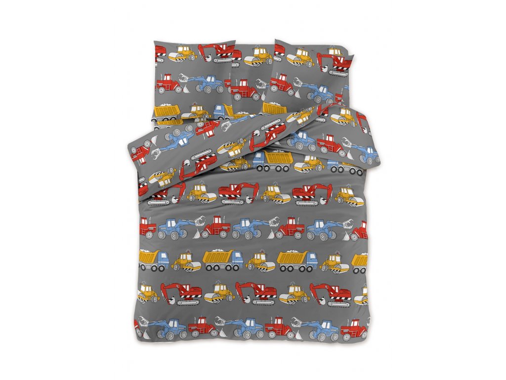Detské obliečky STAVEBNÉ STROJE sivé