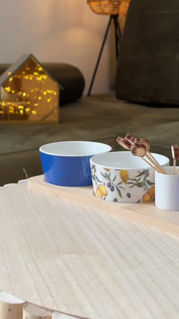- Sada obsahuje: 4 misky, 1 podnos, 1 dóza na špáradlá, 6 špáradiel