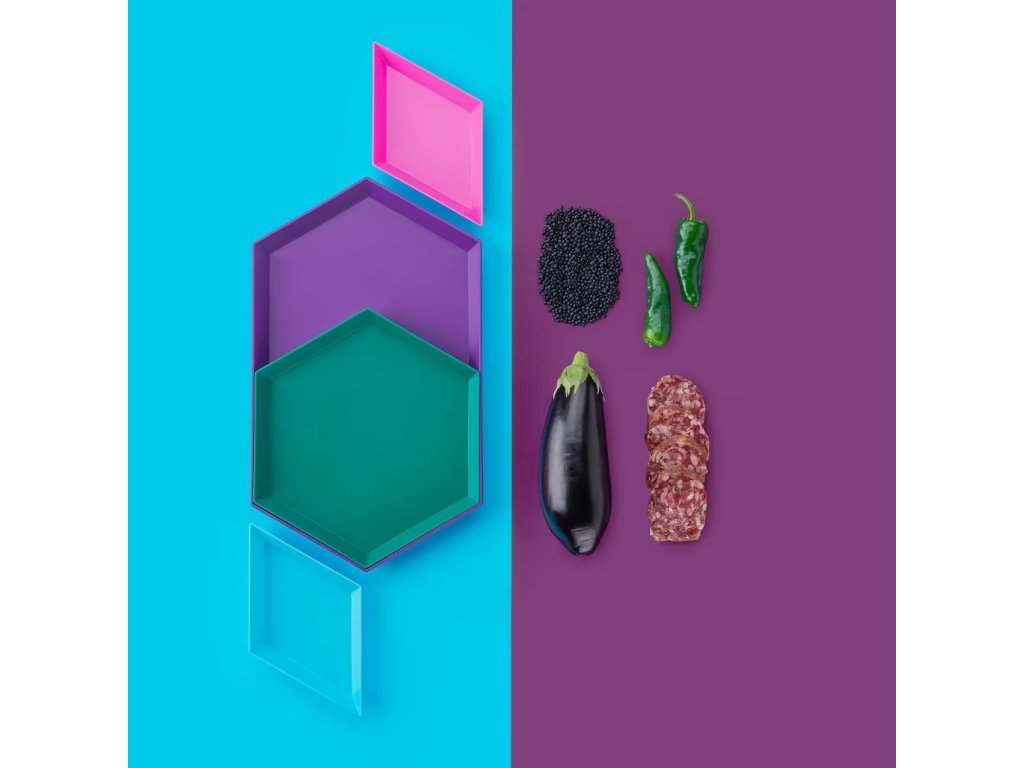 Vyrobené z odolného plastu, ktorý je ľahký, ľahko sa čistí a vhodný pre kontakt s potravinami. Vďaka geometrickému tvaru možno misky prakticky skladať na podnos a vytvárať tak zaujímavé kombinácie. Skvele sa hodí nielen do domácností, ale aj na vonkajšie stolovanie, pikniky či záhradné párty.