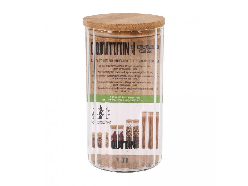 Sklenená dóza na potraviny TITICO s bambusovým vekom 9 x 16 cm