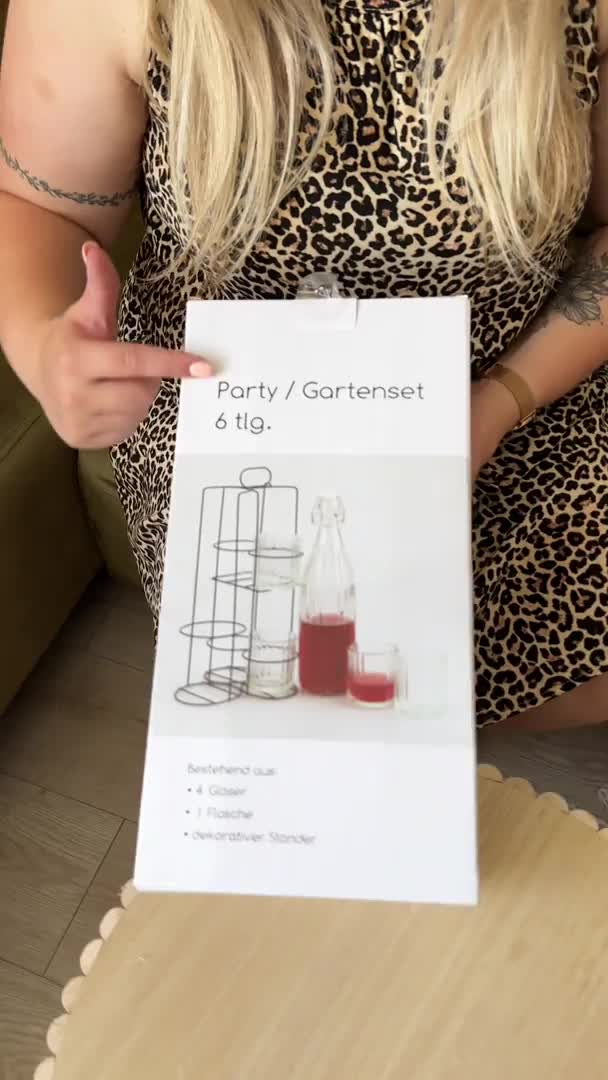 Sklenená fľaša so 4 pohármi v kovovom držiaku BOTTO