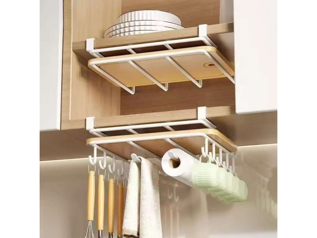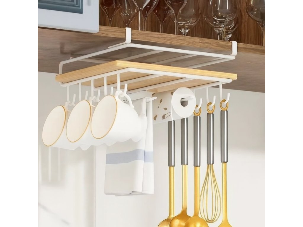 Závesný kuchynský organizér s háčikmi RAXIMO, biely