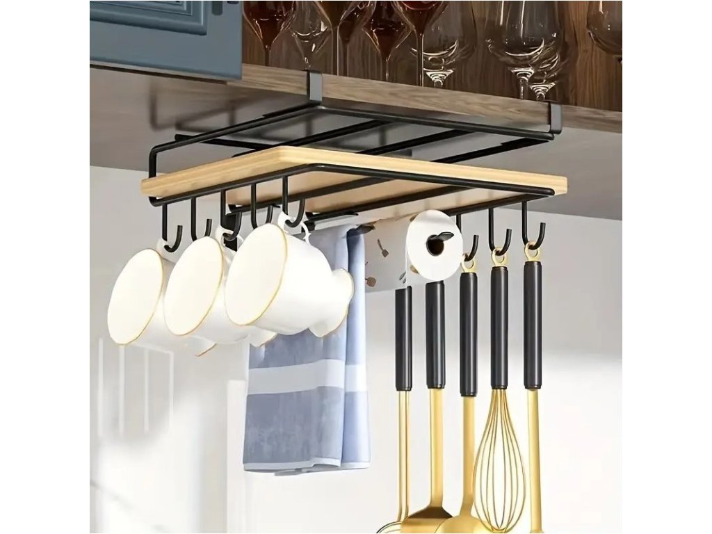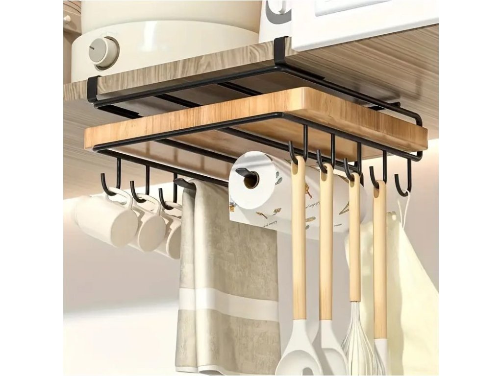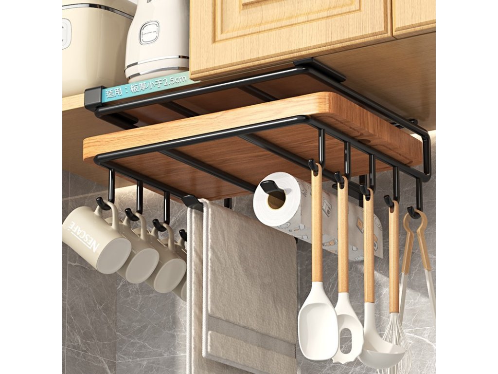 Závesný kuchynský organizér s háčikmi RAXIMO, čierny