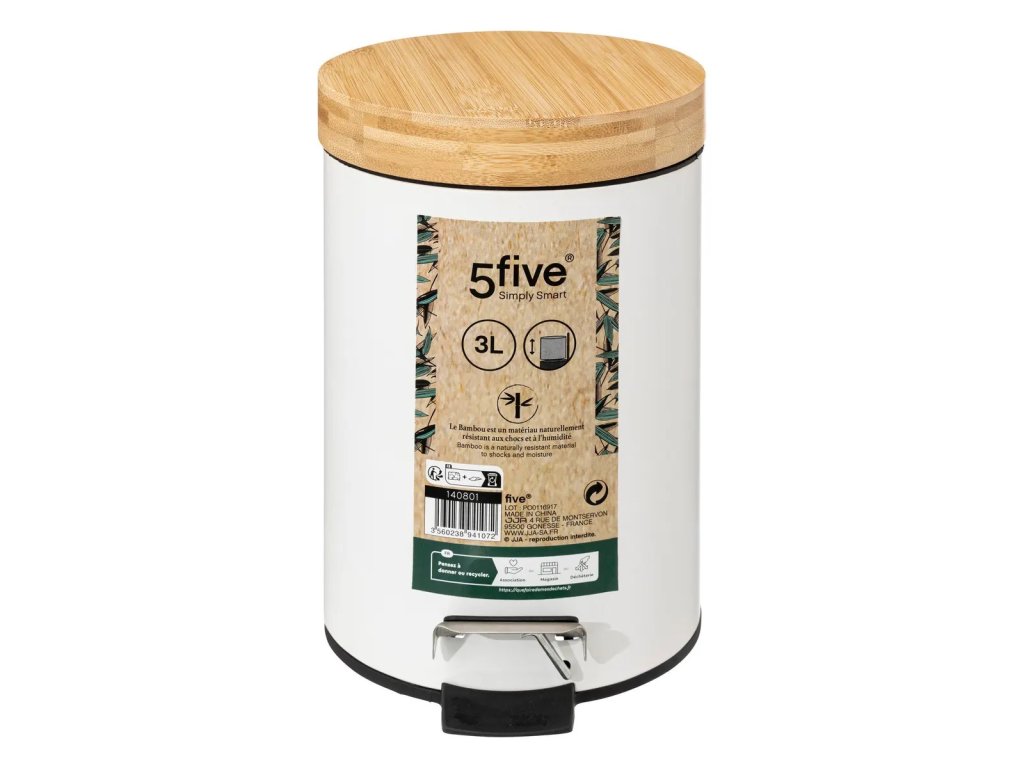 Odpadkový kôš s bambusovým vekom NATUREO 3L, biely