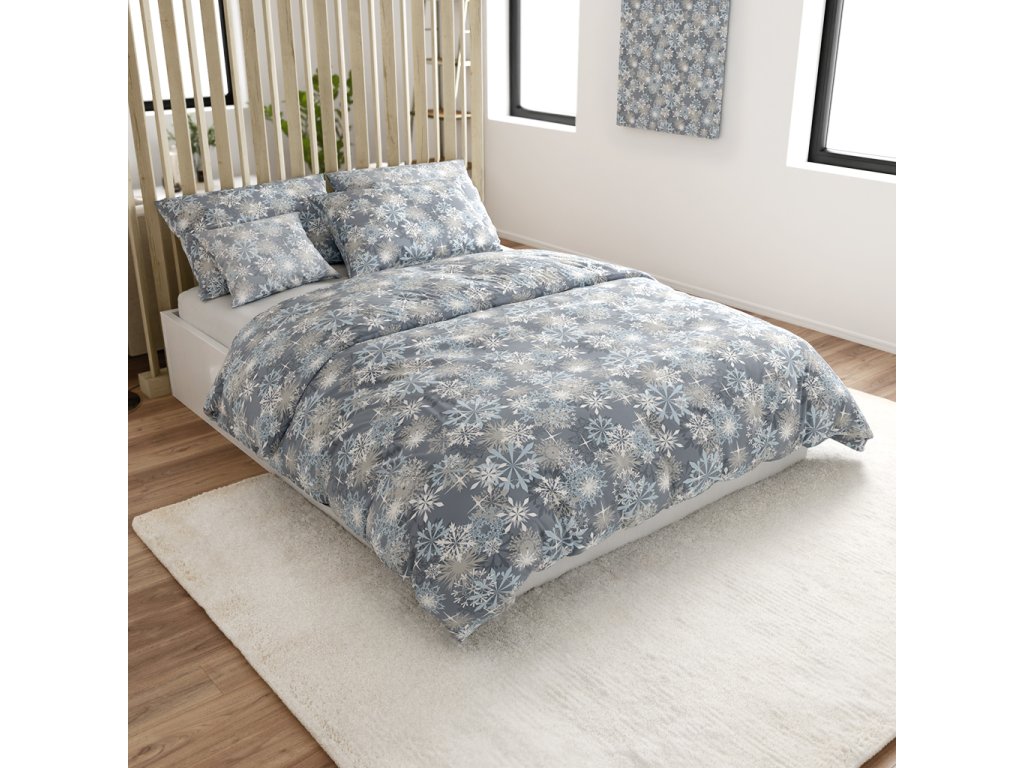 Flanelové obliečky z mikrovlákna SNOWFLAKE modro-sivé