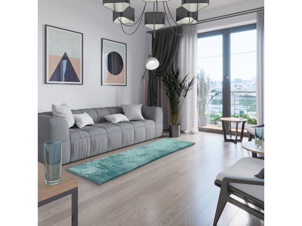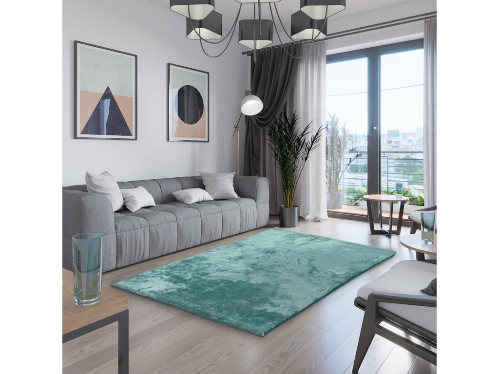 Modrý koberec LOVIKA z umelej králičej kožušiny