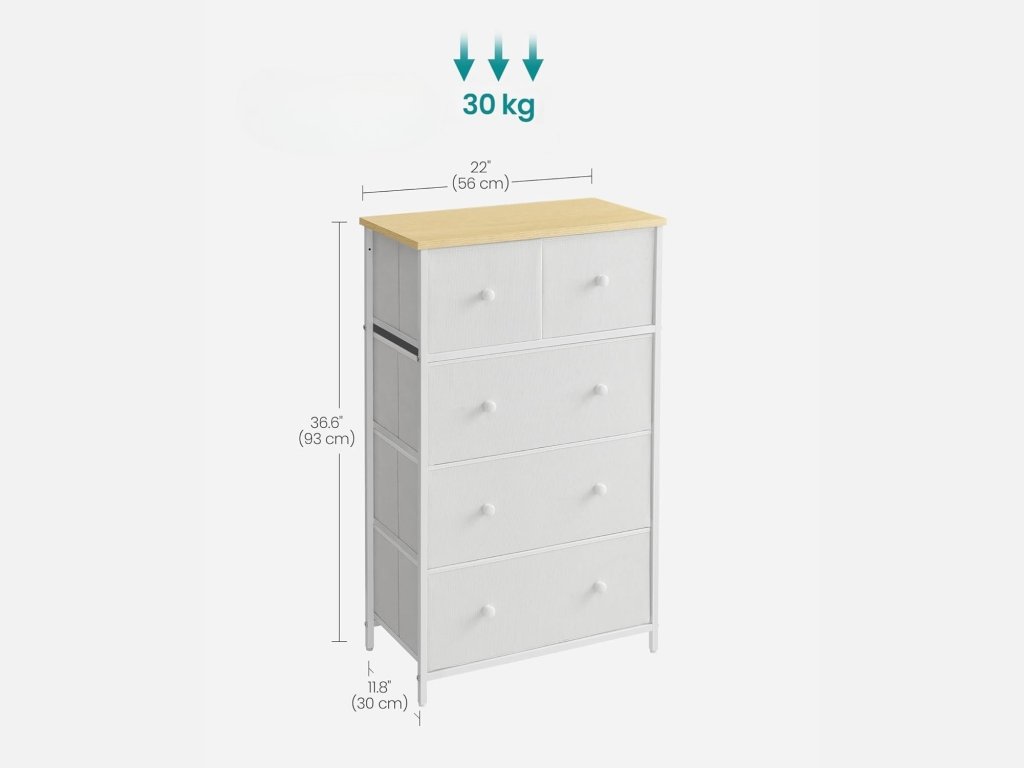 - 5 vyberateľných textilných zásuviek s látkovým poťahom