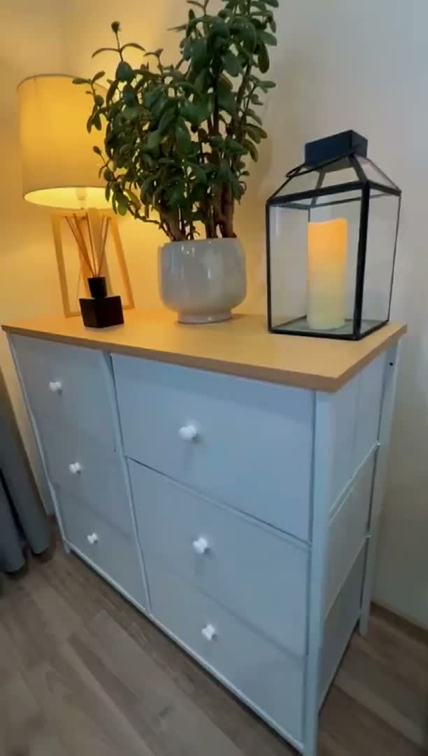 Táto štýlová komoda v kombinácii bielej textílie a prírodného dekoru dubu je ideálnym riešením pre každodennú organizáciu. Či už ju postavíte do spálne na spodnú bielizeň, do predsiene na doplnky alebo do detskej izby na hračky, vždy ponúkne dostatok priestoru vďaka 6 priestranným zásuvkám. Vďaka svojej ľahkej konštrukcii sa ľahko presúva, a napriek tomu zostáva stabilná vďaka výstuhám a možnosti uchytenia k stene. Elegantný vzhľad a praktické využitie z nej robia ideálnu voľbu pre každý domov.