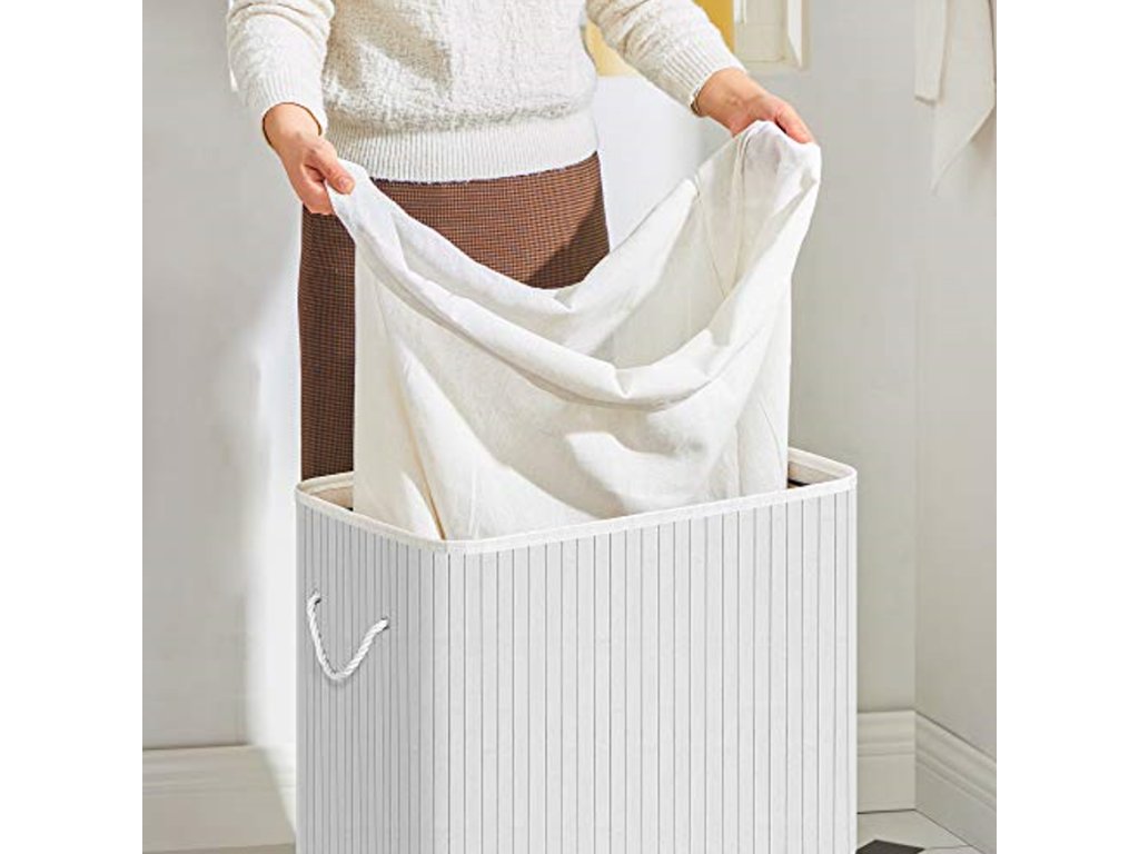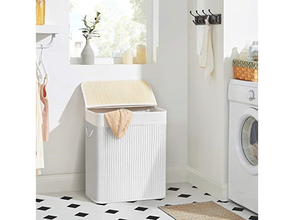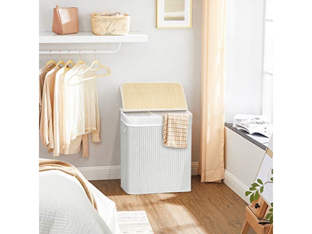 Biely dvojkomorový bambusový kôš na bielizeň LECEBY