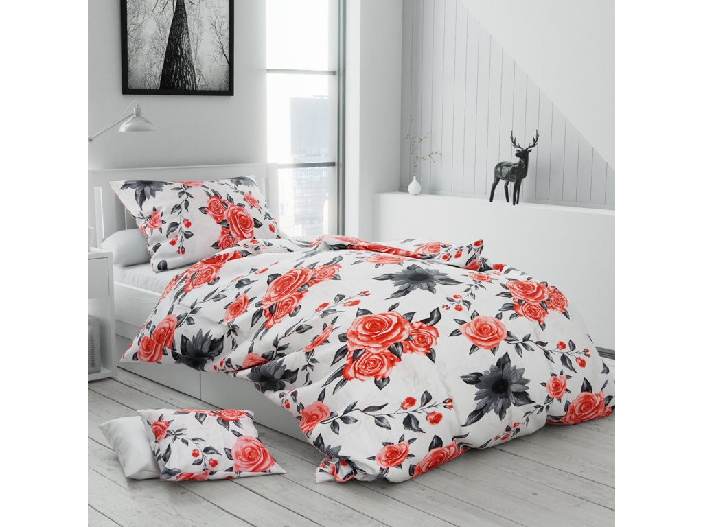 Krepové obliečky RED ROSES biele + obliečka na vankúšik 40 x 50 cm zadarmo