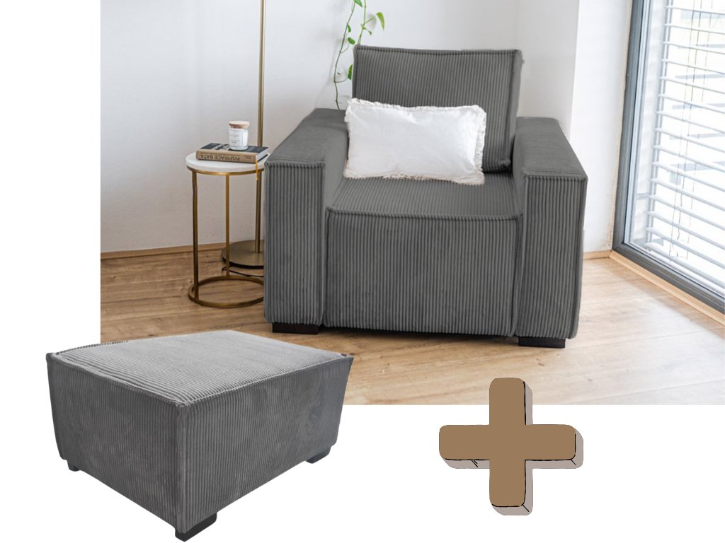 Kreslo s taburetom SMART SET, tmavo sivá