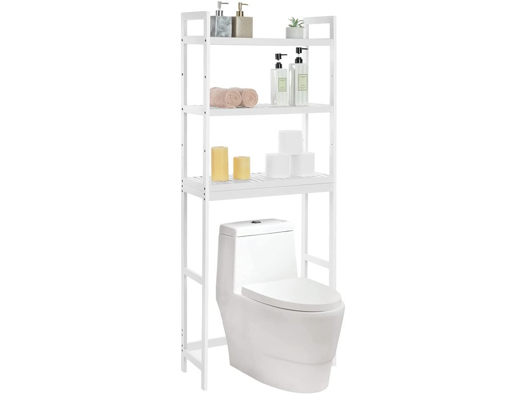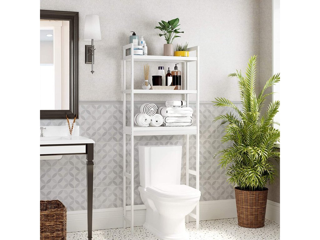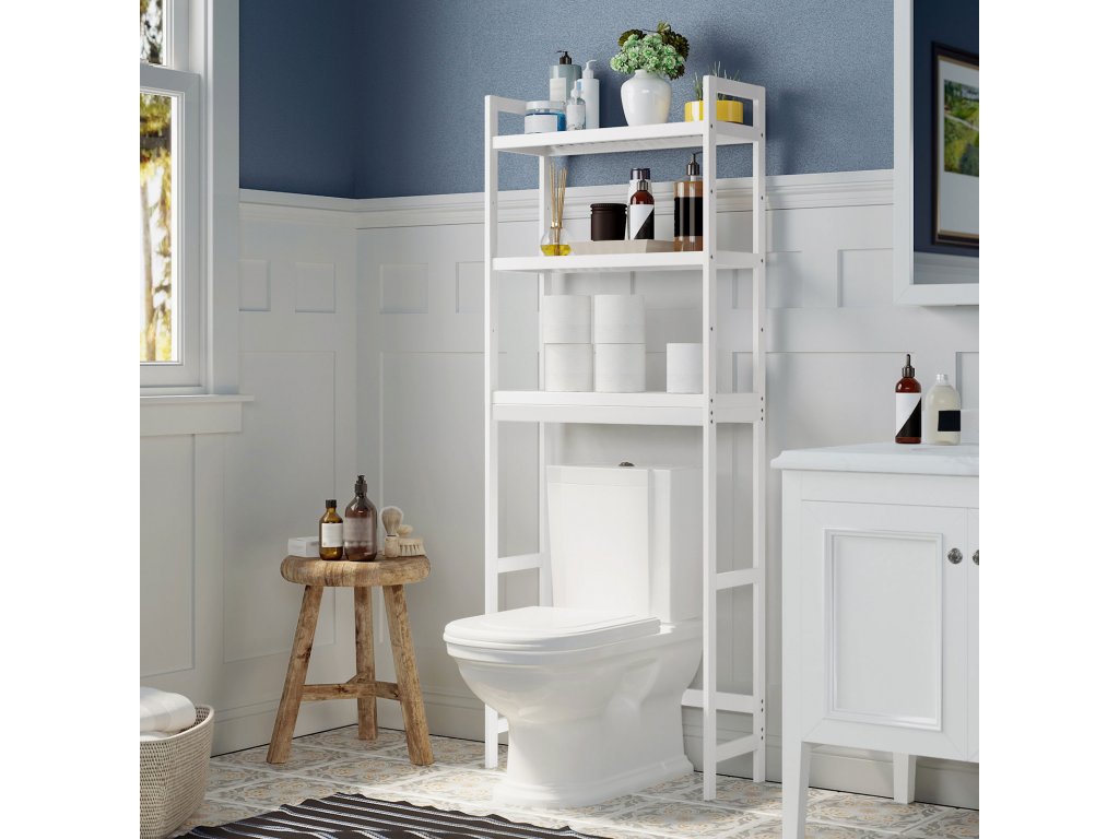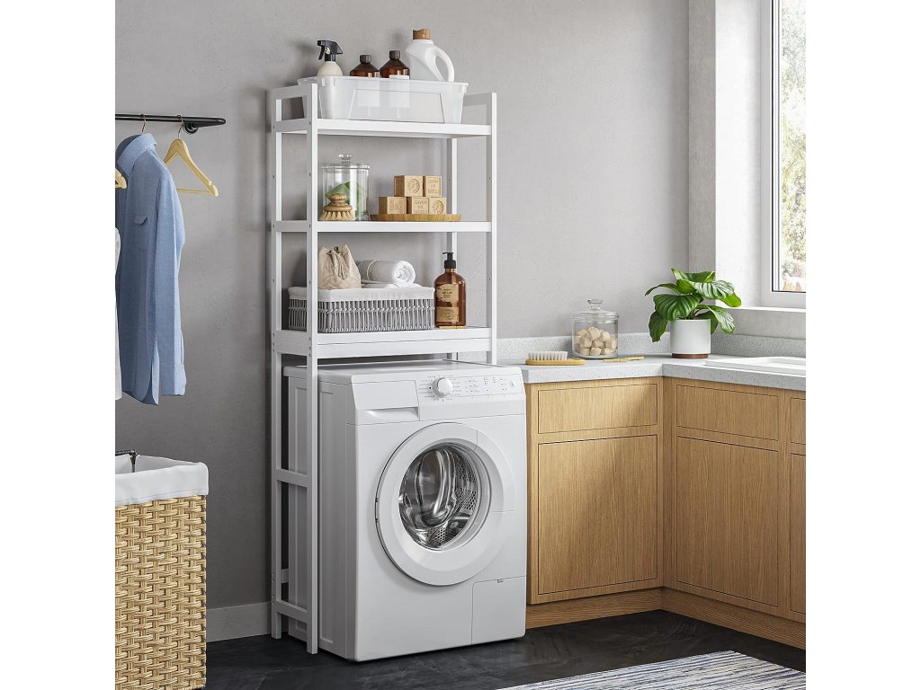 Biely kúpeľňový regál TALLO nad práčku a toaletu