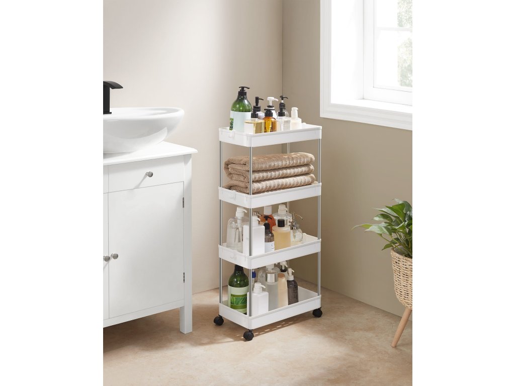 Praktické regály do kúpeľne sú ideálnym riešením pre udržanie poriadku a prehľadnosti. Vďaka ľahkej a odolnej konštrukcii z chrómovanej ocele a polypropylénu sa ľahko udržujú a sú odolné voči vlhkosti. Viacúrovňové police umožňujú efektívne využitie priestoru a ľahký prístup ku všetkým potrebným veciam. Vďaka možnosti pridania alebo odobratia políc i koliesok ich možno ľahko prispôsobiť vašim konkrétnym potrebám.