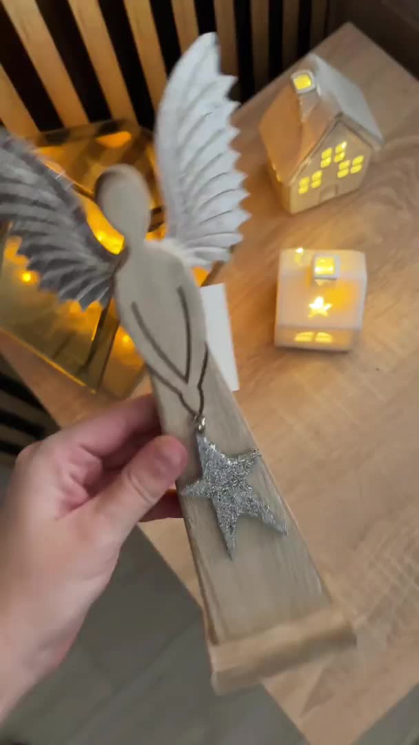 Drevený anjel ANGEL SILVER 26 cm prírodný