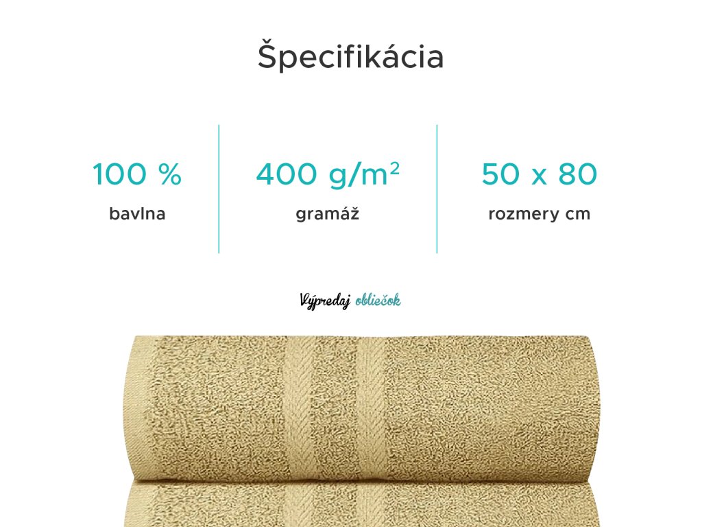 Klasické uteráky s gramážou 400 g/m2 sú vyrobené z kvalitnej bavlny a veľmi obľúbené u širokej populácie. Stredná gramáž uterákov zaistí všetky požadované vlastnosti v dobrej kvalite. Nižšia gramáž sa prejavuje najmä na hrúbke materiálu, tá je o niečo tenšia ale stále pevná.