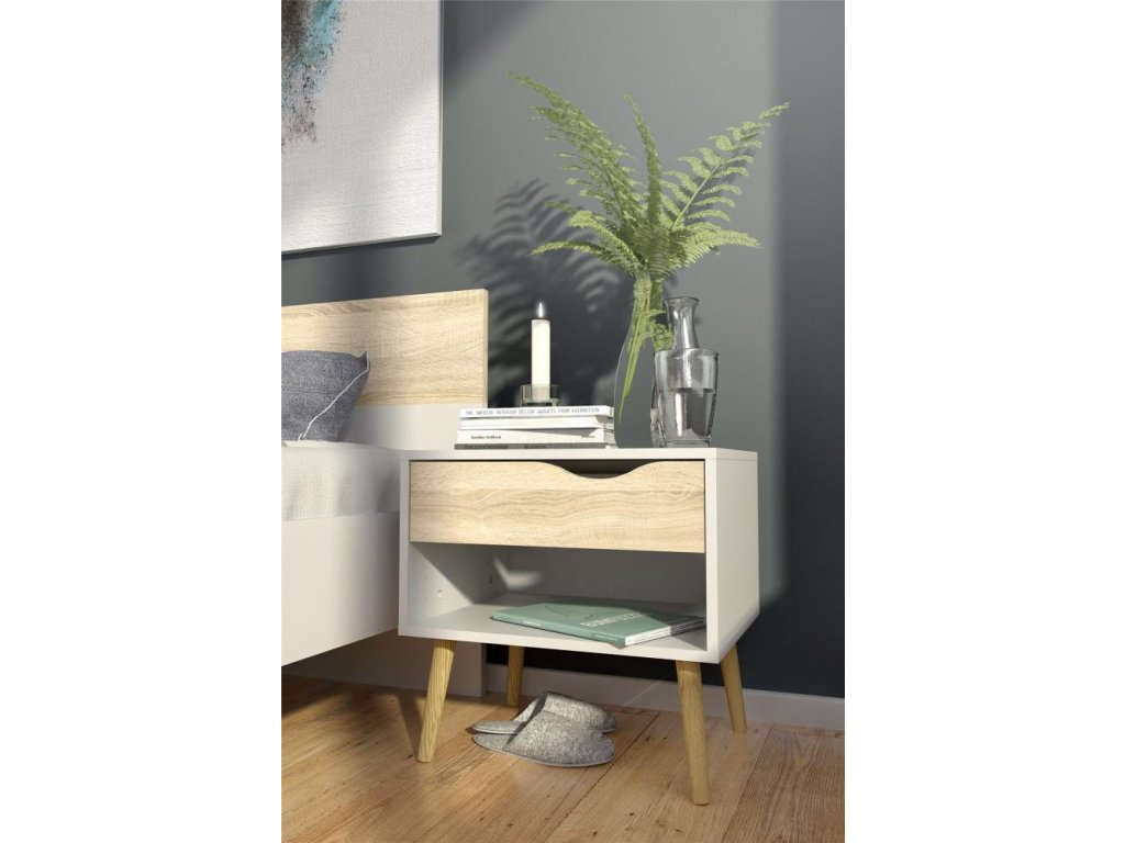 Biely nočný stolík s dekorom dub sonoma OSLO 75394