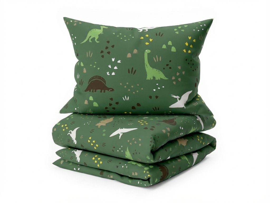 Bavlnené obliečky do postieľky DINO STEPS tmavozelené