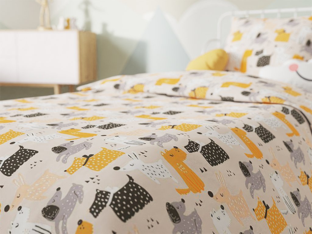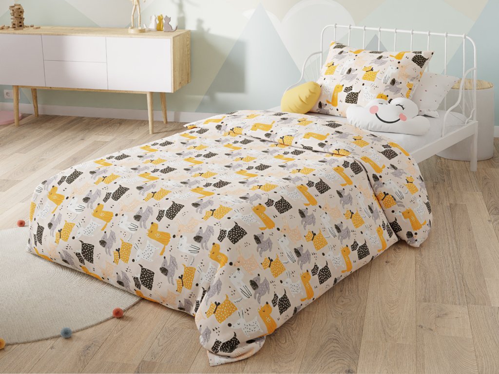 Bavlnené obliečky do postieľky FAREBNÉ PSÍKY krémové