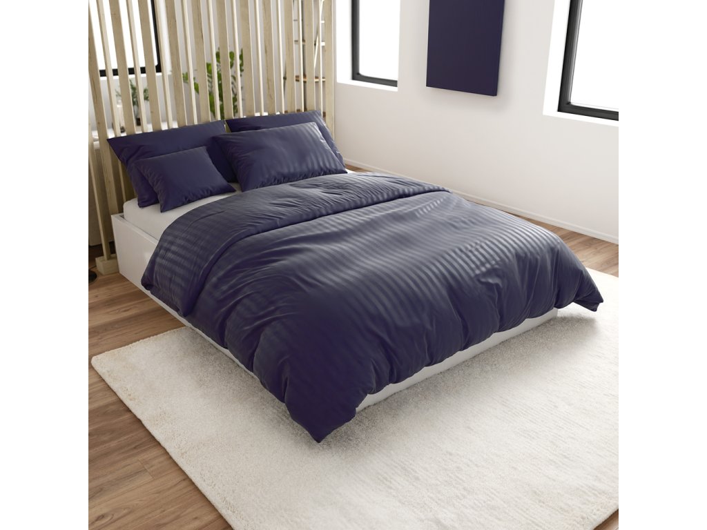 Hotelové obliečky z mikrovlákna JASMINE PURE tmavomodré - prúžok 2 cm