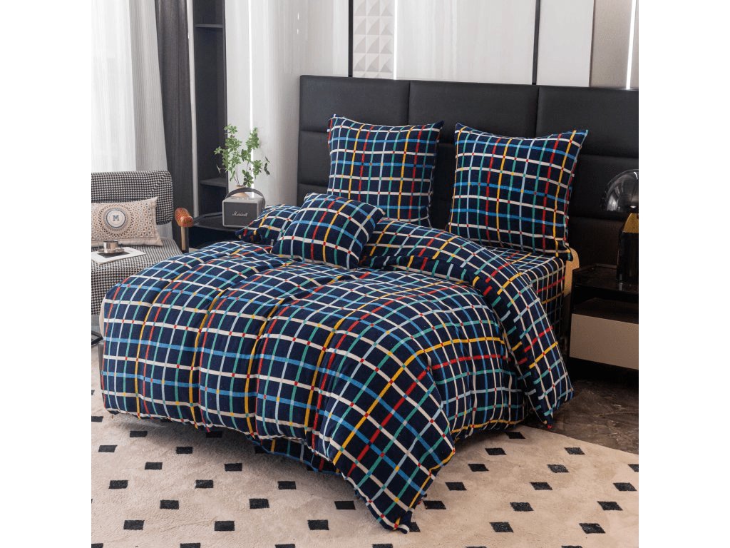 Obliečky mikroplyš GRID v tmavo modrej farbe prinesú do vašej spálne štýlový a moderný vzhľad. Ich jemný a príjemný mikroplyšový materiál vás zohreje aj v chladných zimných nociach, zatiaľ čo vzor farebných mriežok na tmavo modrom podklade dodá miestnosti elegantný kontrast. Tento materiál je navyše veľmi mäkký, hebký a nenáročný na údržbu.