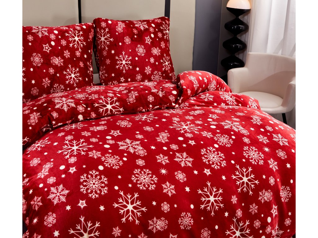 Obliečky mikroplyš SNOWFALL červené