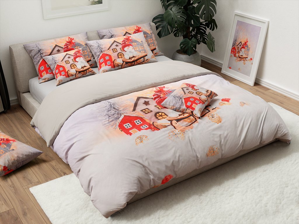 3D Bavlnené obliečky SNOWMAN ON A SLEIGH sivé, 100% bavlna