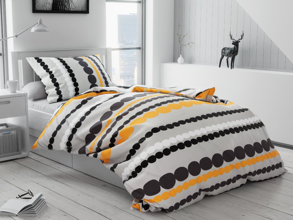 Okoreňte interiér spálne, buďte originálny a nevšedný. Vytvorte kontrast farieb, medzi pastelové odtiene zaraďte jednu šokujúcu. Odlíšte sa od ostatných. Jasné farby obliečky so živými vzormi sú tou správnou voľbou. Sýte farby a motívy kvetov, kruhov, hviezd alebo pruhov zaručí trendy spálni. Moderný štýl je obľúbený a hodí sa do všetkých domácností, jeho vzdušnosť aj praktickosť ocení každý.