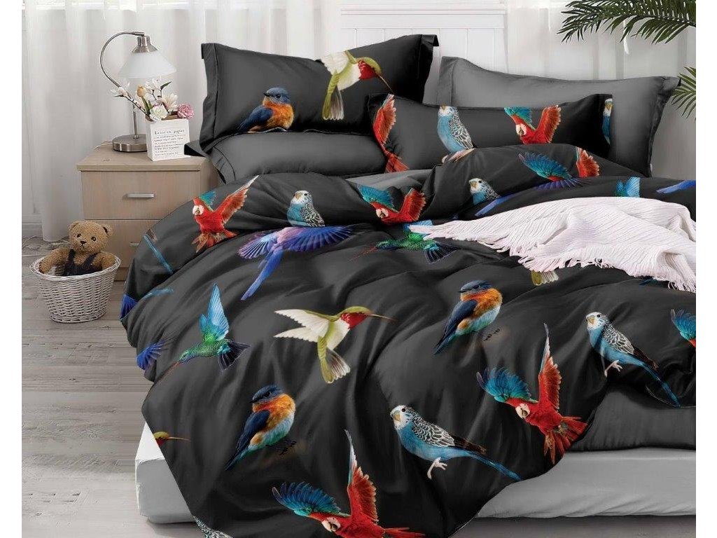 Obliečky z mikrovlákna FAREBNÉ VTÁČKY čierne