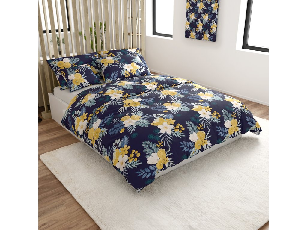 Obliečky z mikrovlákna FLOWERISH tmavo modré