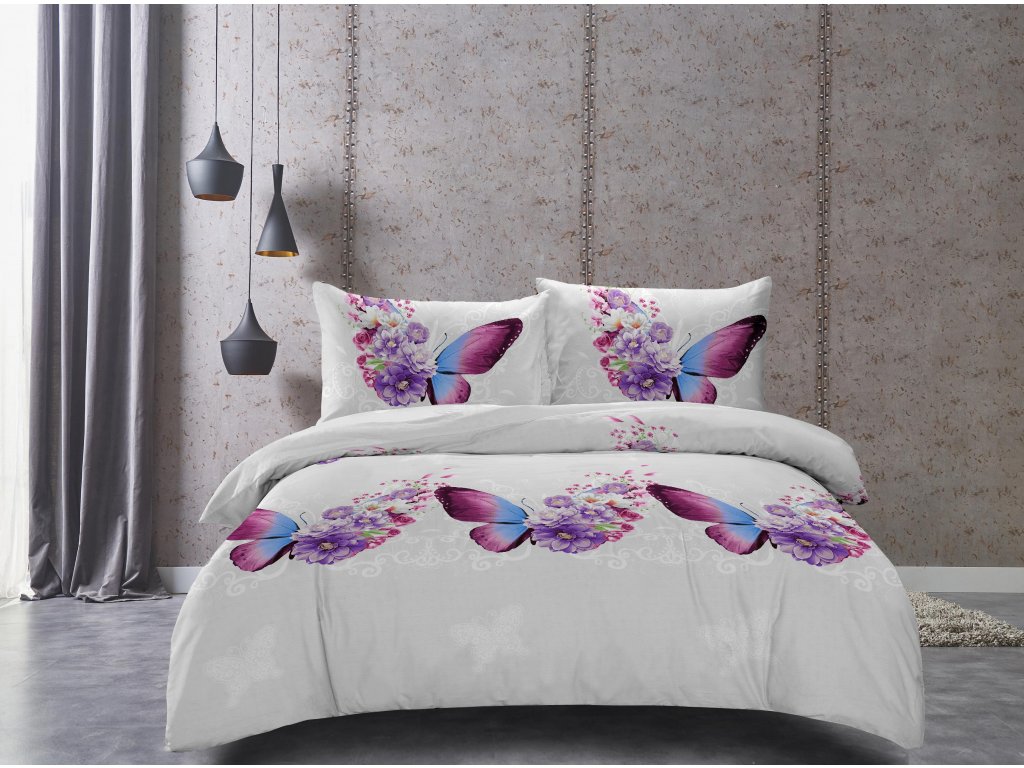 Obliečky z mikrovlákna MOTÝĽ A KVETY svetlosivé