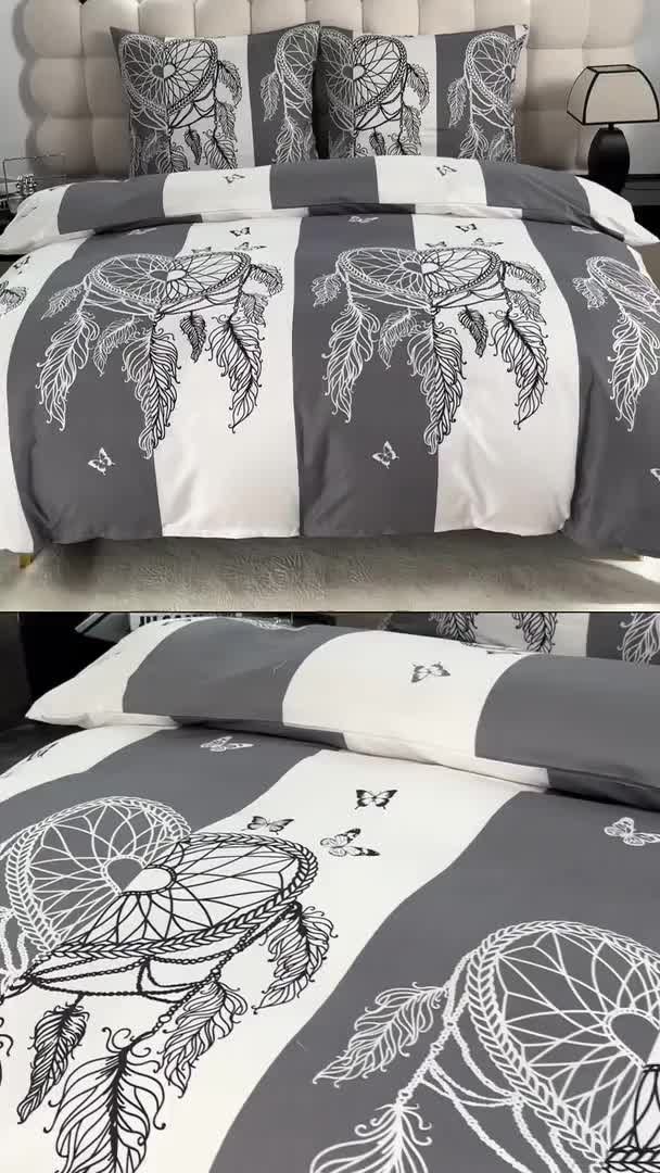 Obliečky z mikrovlákna TIRSO sivo-biele vás na prvý pohľad zaujmú elegantnou kombináciou sivej a bielej farby doplnenej o výrazný motív lapača snov. Jemný vzor motýľov a pierok navodzuje pocit pokoja a pohody, takže prispieva k relaxácii a pokojnému spánku.