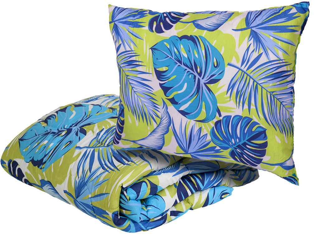 Celoročná prešívaná prikrývka 140x200 cm s vankúšom ARECANO modro-zelená 70x90 cm